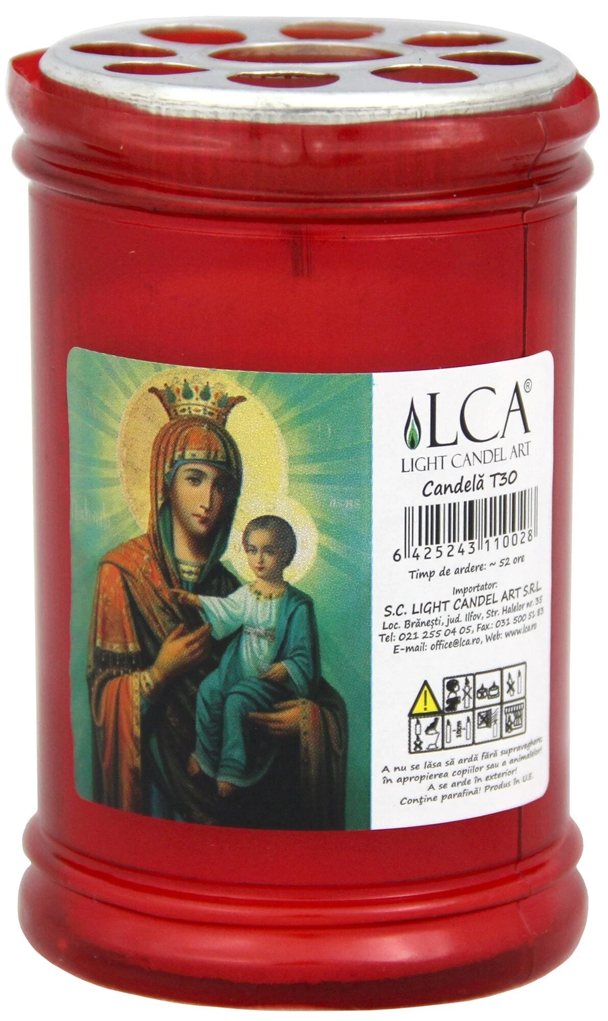 Candela T30 cu capac anti-vant rosu 52 ore