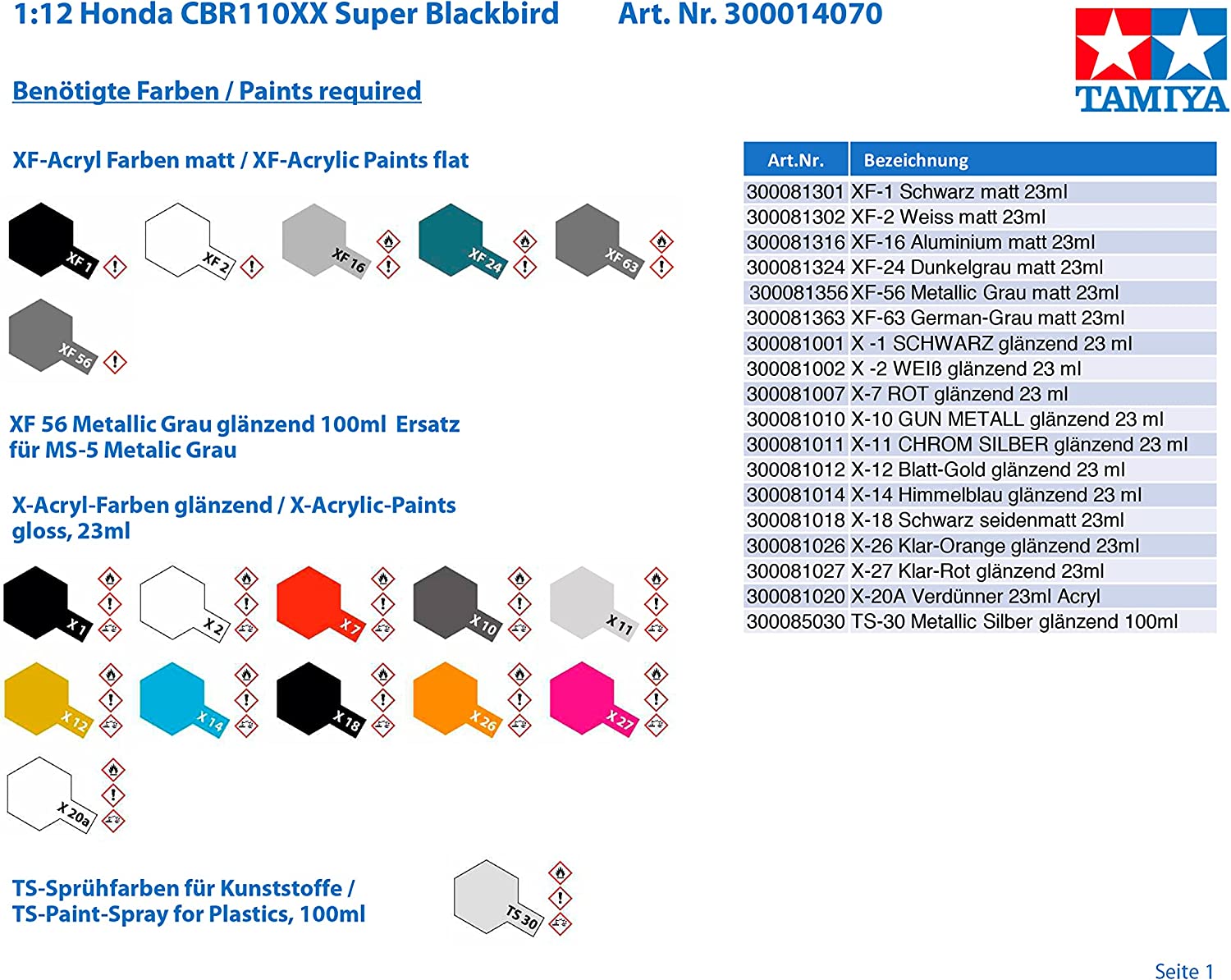 Honda CBR 1100XX 1:12 Tamiya 14070 este un kit macheta motocicleta produs de compania Tamiya